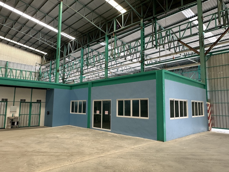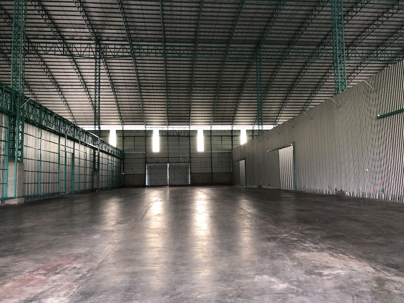 โกดังพื้นที่ 9000 ตารางเมตร ขนาดกว้าง 90 เมตร ยาว 100 เมตร สูง 18 ถึง 30 เมตร สามารถแบ่งเช่าได้ตามความต้องการ 2400 ตารางเมตร 3000 ตารางเมตร หรือ 3600 ตารางเมตร