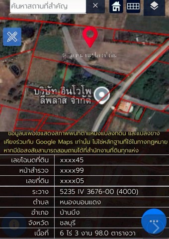 ขายที่ดินหนองบอนแดงบ้านบึงชลบุรีราคาถูก พื้นที่สีเหลือง พื้นที่ 6-3-98 ไร่