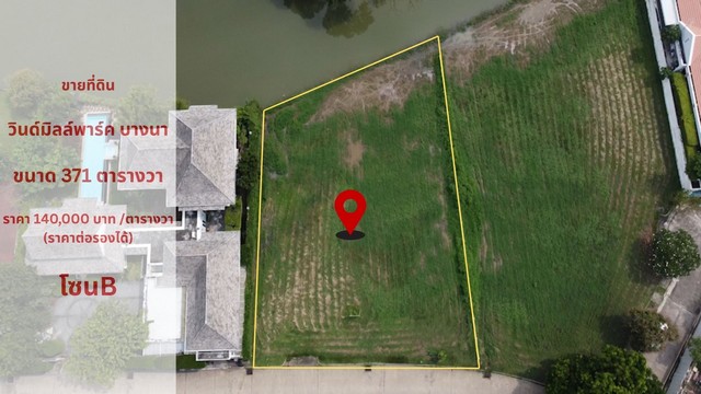ขายที่ดินริมน้ำ วินด์มิลล์ พาร์ค บางนาตราด กม.10 ขนาด 371 ตารางวา ใกล้สนามกอล์ฟซัมมิท และMegaบางนา
