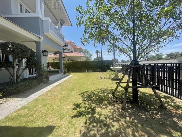 สวน รอบบ้าน ใช้ระบบสปริงเกอร์ ครบทุกจุด ไฟรอบบ้าน อัตโนมัติ ประตูรั้วบ้านไฟฟ้าหมู่บ้านติดถนน ศรีนครินทร์ ทำเลดี เข้า-ออก ถนนศรีนครินทร์สะดวกมาก