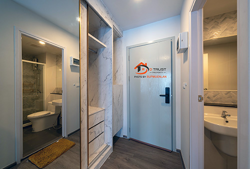 ตกแต่ง : แอร์ 2 เครื่อง / เครื่องทำน้ำอุ่น / เครื่องซักผ้า / ตู้เย็น 2 ประตู / ไมโครเวฟ / ชั้นวางของบิ้วอินทั้งห้อง / ทีวี 1เครื่อง / ชุดโซฟา / ผ้าม่าน มีผ้ากรองแสง / ตู้เสื้อผ้า / เตียงนอน 5ฟุต / โต๊ะทานข้าว