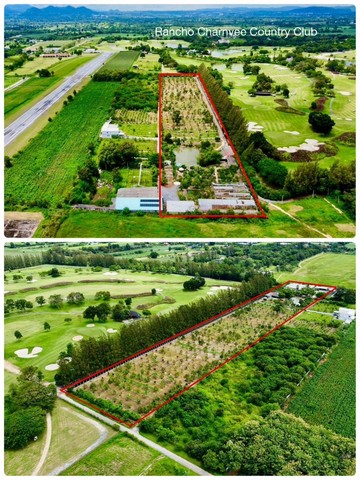 หน้ากว้างติดถนน 60 เมตร ลึก 430 เมตร ติดสนามกอล์ฟ Rancho Charnvee Golf บรรยากาศดี อากาศดี มีสระน้ำในแปลงที่ดิน