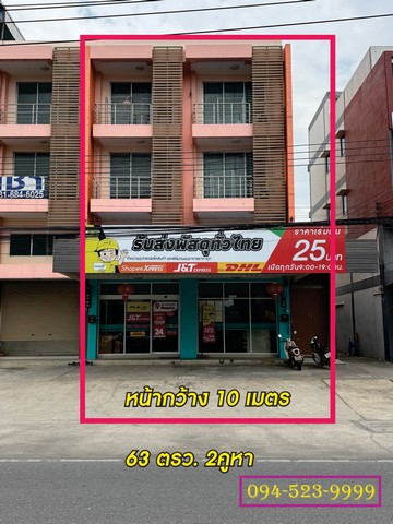 ขาย อาคารพาณิชย์ 2 คูหา 62.6 ตร.วา ติดถนน หน้ากว้าง 10 เมตร จอดรถหน้าบ้านได้ ขายพร้อมผู้เช่า