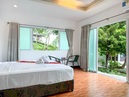 บ้านเดี่ยวขนาด 28 ตร.ม. ตกแต่งครบ พร้อมแอร์ ห้องนั่งเล่น และสระว่ายน้ำส่วนกลาง บรรยากาศเงียบสงบ เหมาะสำหรับพักผ่อน