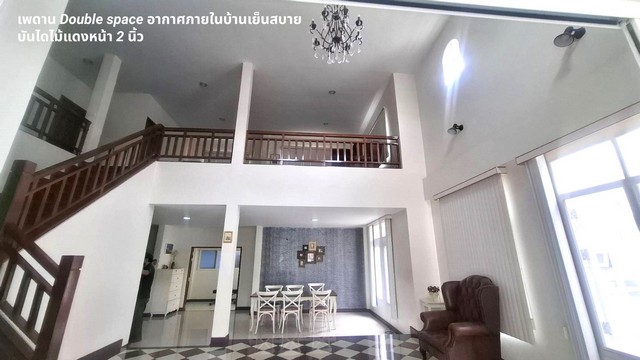 - เป็นบ้านเดี่ยวหรู 2 ชั้น เพดานสูงแบบ Double space ทำให้อากาศถ่ายเทลมเย็นภายในตัวบ้าน