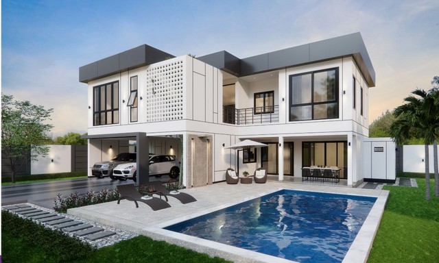 ขายพูลวิลล่าหรู สไตล์โมเดิร์น 4 นอน ใกล้สนามบินและเซ็นทรัลแอร์พอร์ต