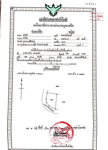 ที่ดินอยู่ อ.หัวหิน ต.ทับใต้ เข้า ซอย 112 ยังไม่ข้ามบายพาสเอกสาร น.ส.3ก. ครุฑเขียว