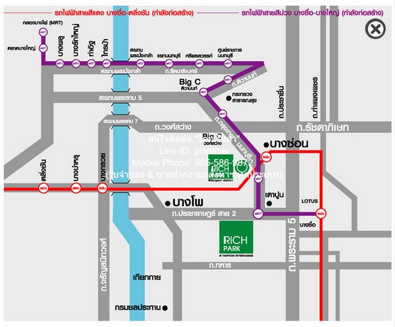 สถานที่สำคัญใกล้เคียง: MRT สายสีน้ำเงิน และสายสีม่วง