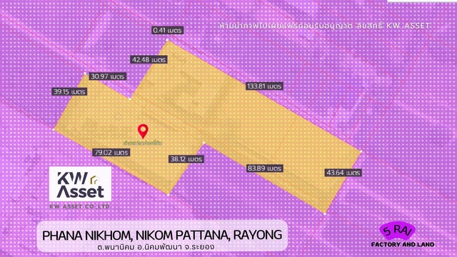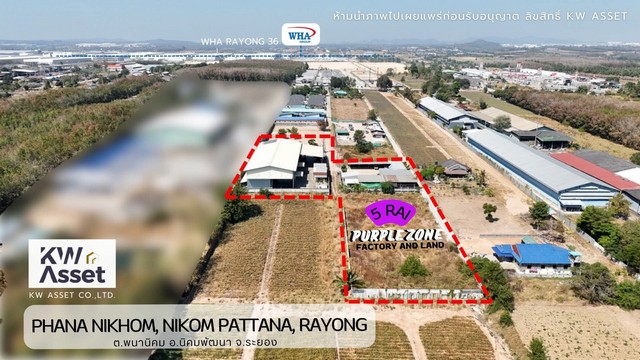 ขายที่ดิน 5 ไร่ พร้อมโรงงาน 1,700 ตรม ผังม่วงลาย ทำเลทองต.พนานิคม อ.นิคมพัฒนา จ.ระยอง
