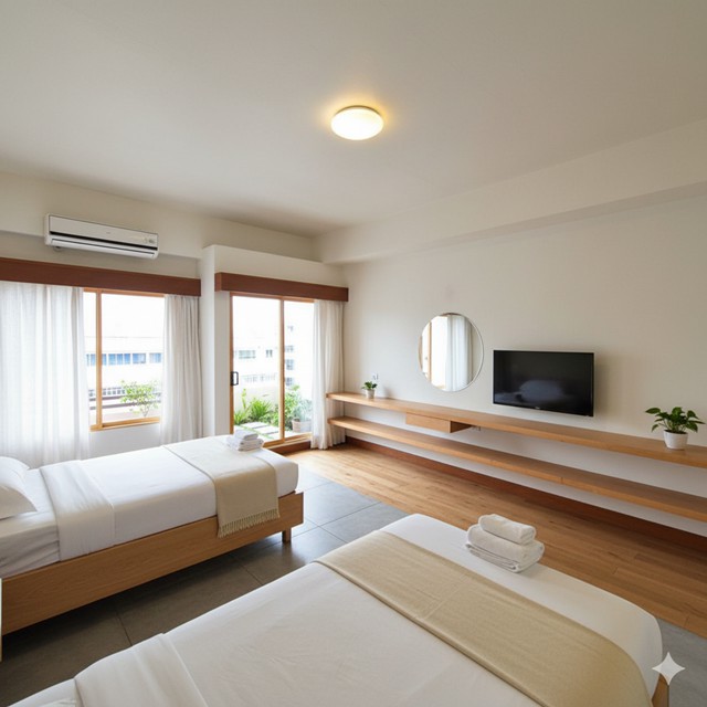 สำหรับ 70 คน เหลือ 12,000 บาทต่อเดือน รวมไฟรวมน้ำ มีแม่บ้านทำความสะอาด 1-2 ครั้งต่อสัปดาห์