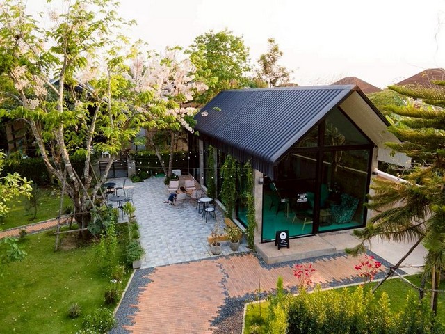 มีทางเข้าบ้าน 2 ฝั่ง ด้านหน้าร้านกาแฟ และด้านข้างเข้าทางตัวบ้าน