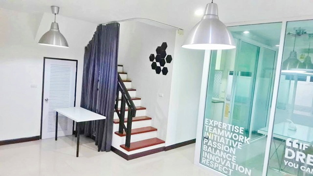 Bangkok-Nonthaburi3 MRT Yaek Tiwanon 600 m. 2-story townhouse for rent/sale 37 sq.wa. 296 sq.m. 26,899 B-M. 2.7 km. from Sathit Christian International School Fully furnished 3 bed 3 bath selling for 8.49 million baht Located in the heart of the city Ideal for a home office or residence Shopping nearby Bangkok Nonthaburi Market 2.1 km. Easy accessแยก - ติวานนท์-วงศ์สว่าง กรุงเทพ-นนท์