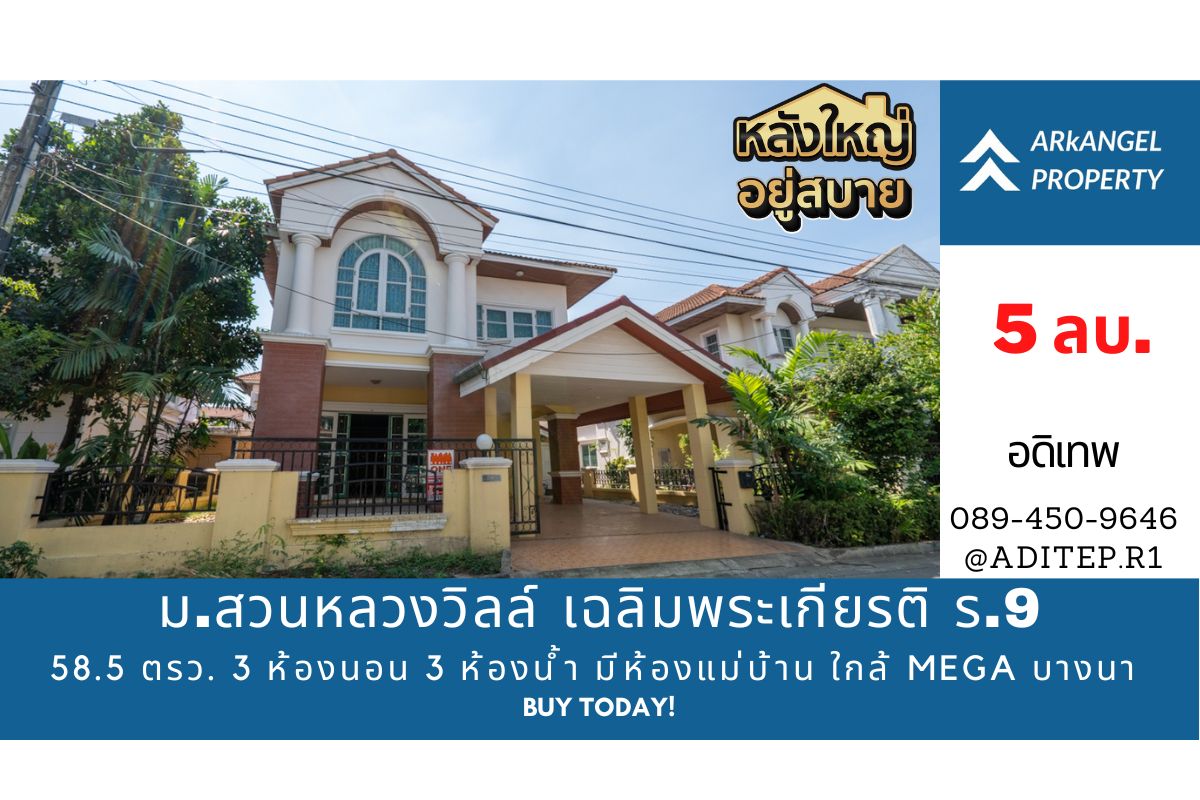 ขายขาดทุน! บ้านเดี่ยว เฉลิมพระเกียรติ ร.9 ซอย 28 ม.สวนหลวงวิลล์ 58.5 ตรว. 3 ห้องนอน 3 ห้องน้ำ มีห้องแม่บ้าน ใกล้ MEGA บางนา วงแหวนกาญจนาภิเษก
