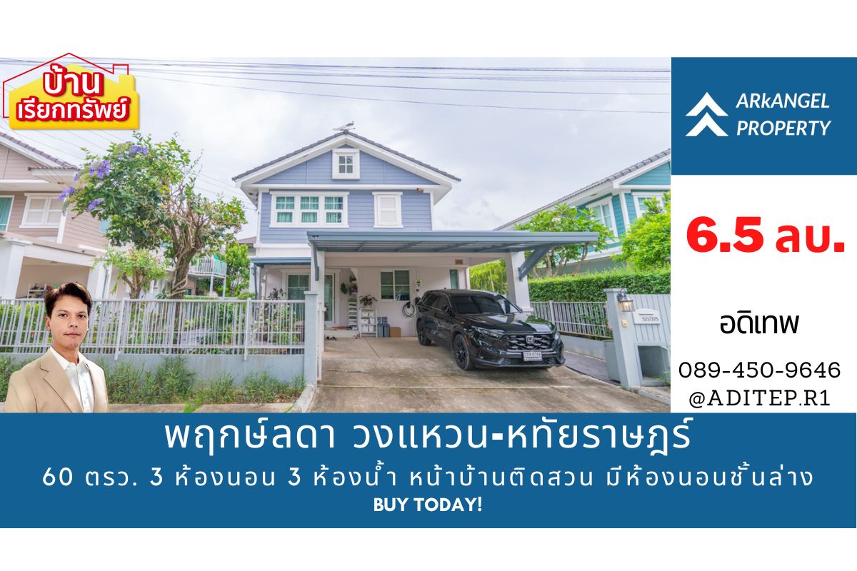 ขายบ้านเดี่ยว 60 ตรว. พฤกษ์ลดา วงแหวน–หทัยราษฎร์ 3 ห้องนอน 3 ห้องน้ำ หน้าบ้านติดสวนไม่ชนใคร มีห้องนอนชั้นล่าง เหมาะผู้สูงอายุ