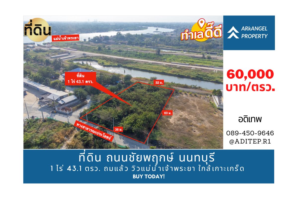 ที่ดินอยู่ใกล้แม่น้ำเจ้าพระยาแค่ 300 เมตร หากขึ้นอาคารสูงสามารถเห็นวิวโค้งน้ำได้สบาย