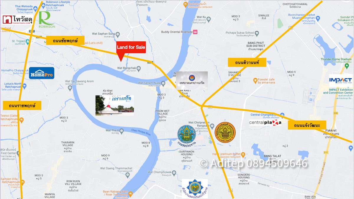 ขาย ที่ดิน ถนนชัยพฤกษ์ ปากเกร็ด 1 ไร่กว่า เข้าซอย 150 ม. ใกล้แม่น้ำเจ้าพระยา ถนนราชพฤกษ์ สะพานพระราม 4 ที่ดินถมแล้ว