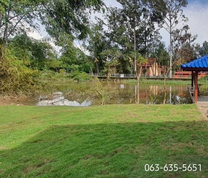 ลึกประมาณ 50 กับ 42 เมตร มีรั้วรอบขอบชิดเรียบร้อย มีพื้นที่งอกริมน้ำเยอะตัวบ้าน สวยสีภายในสว่างสะอาดตา หันทิศเหนือ พื้นที่ใชสอยตัวบ้าน 60 ตรม.