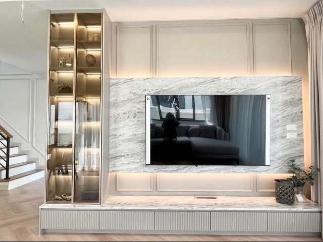 - พื้นที่ห้องรับแขกโถงโล่ง ครัวบิลอิน แบบยุโรป เคาน์เตอร์ไอส์แลนด์