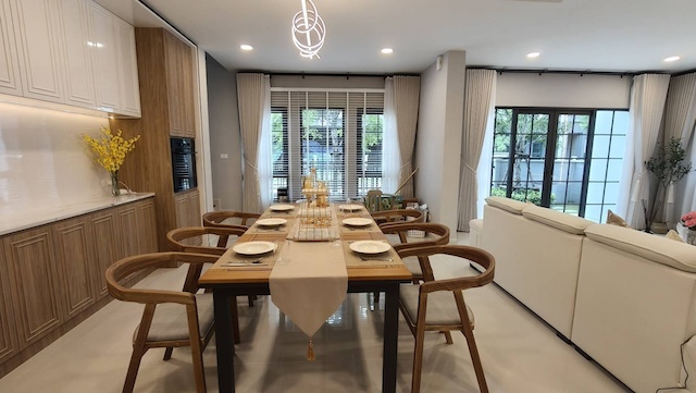 ตกแต่งครบ พร้อมเฟอร์นิเจอร์ Built-in คุณภาพดี บ้านใหม่เอี่ยม ใกล้สวนส่วนกลาง และสนามเด็กเล่น