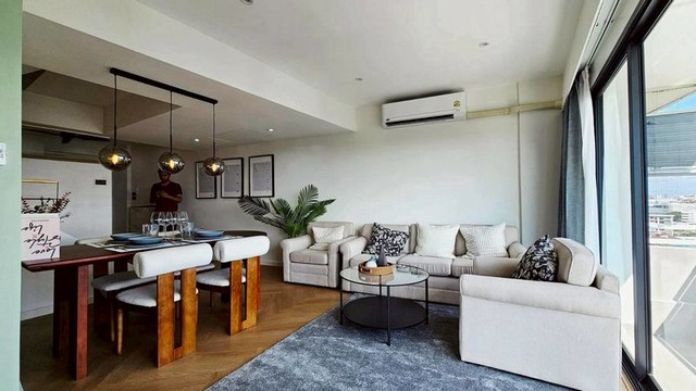ห้องนั่งเล่นเพดานสูง มองวิวเมืองเชียงใหม่ + ดอยสุเทพ