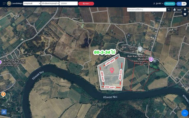 ด่วน! ที่ดิน 66 ไร่ ริมแม่น้ำแควน้อย (โฉนด นส.4 ก.) หน้ากว้าง 250 ม. | อ.เมือง กาญจนบุรี (ต.บ้านเก่า)