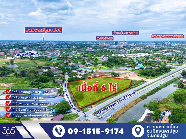 ขาย ที่ดิน 6 ไร่ ทำเลทอง ใกล้ราชภัฏ นครปฐม ติดถนน 2 ด้าน ทางหลวง 1048 และถนนสาครธนากรตะวันตก การคมนาคมสะดวก เหมาะพัฒนาทำธุรกิจ