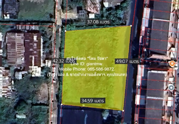 2. ที่ดินหน้ากว้าง 52 ม. มีความลึก 38 ม. (โดยเฉลี่ย) และมีความกว้างของถนนคอนกรีต (ทางสาธารณะประโยชน์)