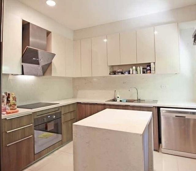 มี 1 ห้องแม่บ้าน 1 ห้องครัว 1 ห้องนั่งเล่น ตกแต่ง Built-in , ครัวบิวท์อินหรู , วัสดุนำเข้าเกรดพรีเมียม