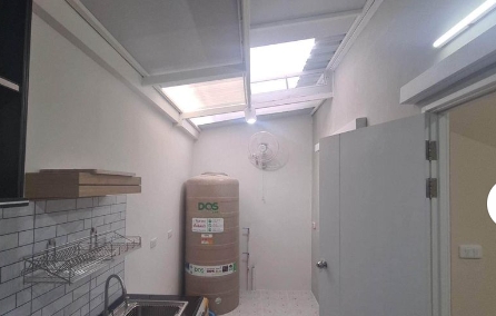 3 นอน 2 น้ำ ต่อเติมหลังครัว ( เคาน์เตอร์ อ่างล้างจาน เตาฝัง ฮู้ดดูดควัน ปั๊มน้ำ แทงค์น้ำ พัดลมติดผนัง)โรงจอดรถ