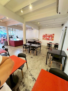 ชั้น 1: พื้นที่ร้าน ห้องน้ำลูกค้า2ห้องแยกชายหญิง ครัวด้านหน้า และครัวด้านหลัง