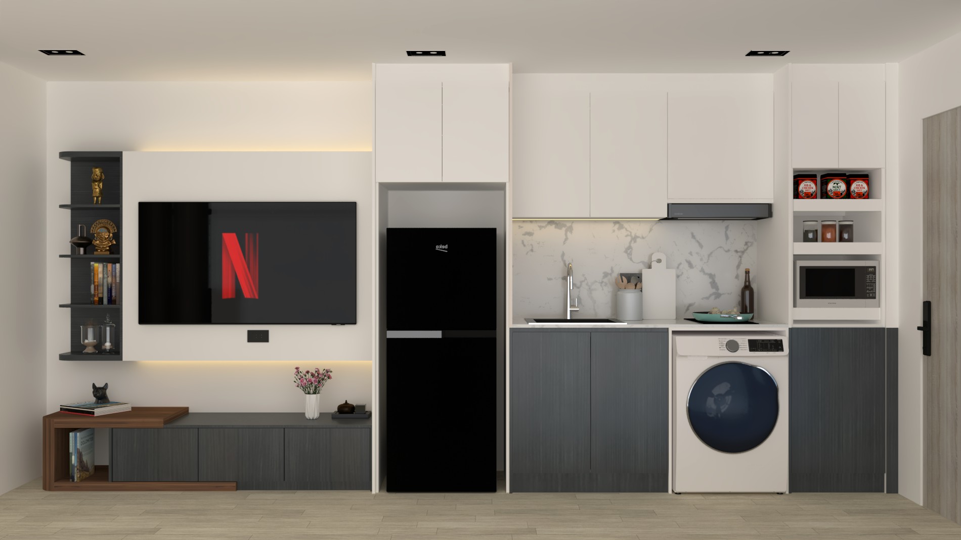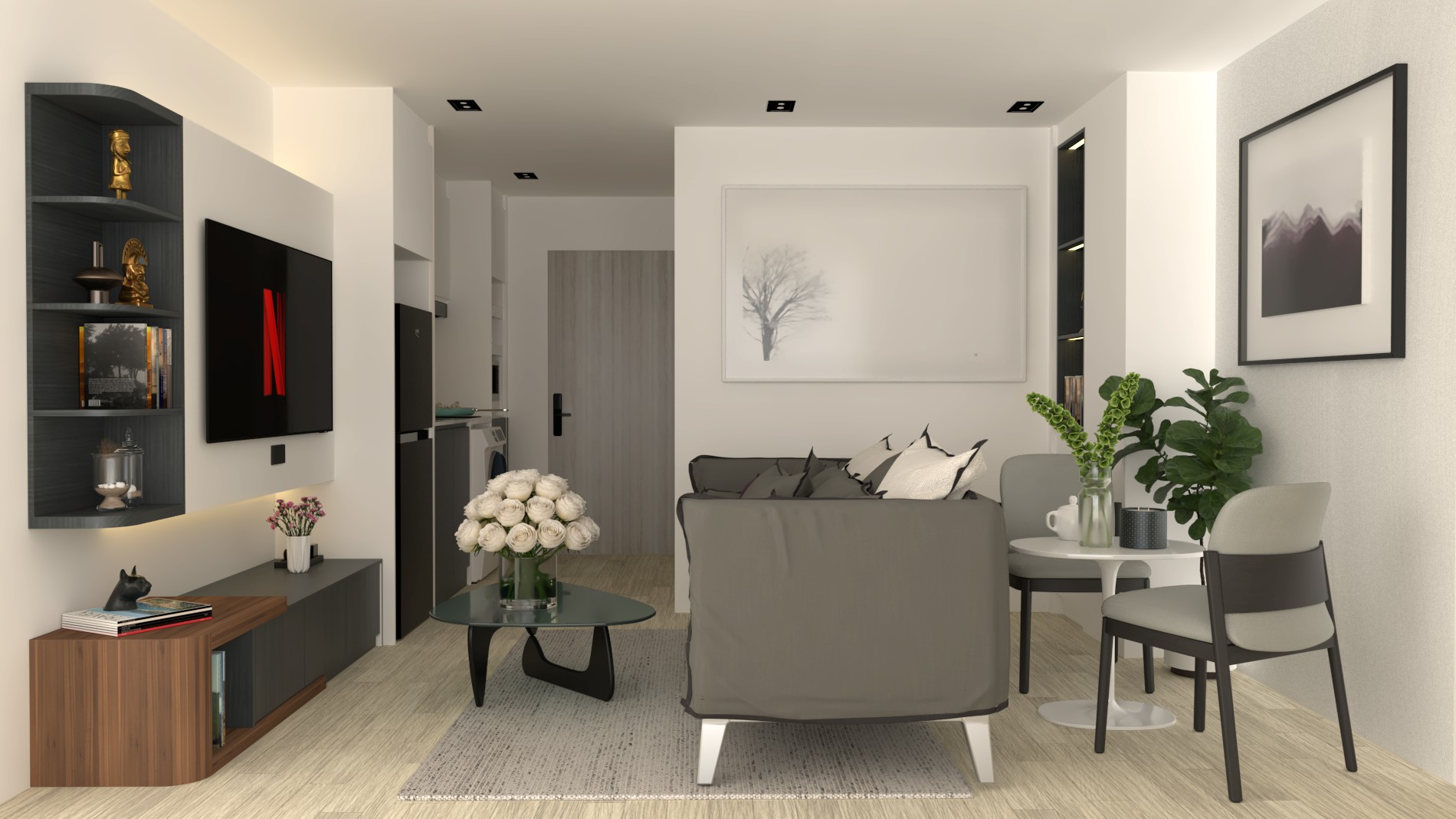 •1 ห้องนอน | 1 ห้องน้ำ | ห้องนั่งเล่น+ครัว | ระเบียงอินดอร์กั้นห้อง