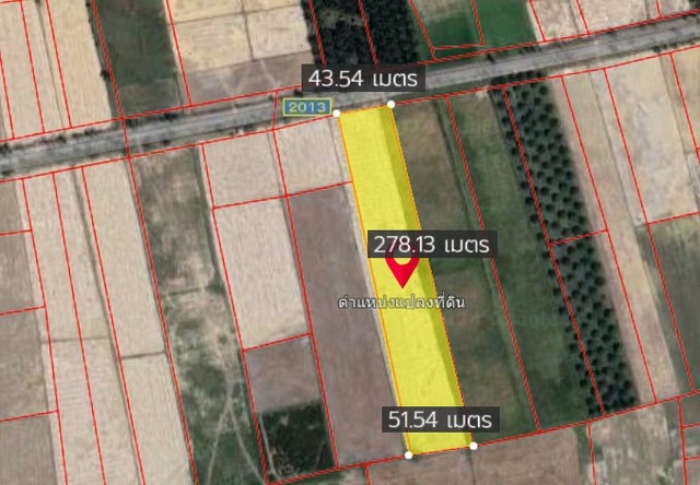 รายละเอียดทรัพย์ที่ขาย: ที่ดินติดถนนทางหลวงหมายเลข 2013 เนื้อที่ 7-2-10 ไร่ (3,010 ตร.ว.)