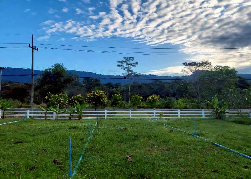หน้าติดถนนลาดยาง ประมาณ 30 เมตร ลึกยาวเข้าไปประมาณ 80 เมตร หน้าแปลงหันไปทางทิศตะวันออกเฉียงเหนือ ได้วิวภูเขาทั้งด้านหน้าและด้านหลัง ช่วงนี้ตอนกลางคืนพระจันทร์ดวงโตขึ้นมารับขอบทิวเขาสวยงามมากค่ะ