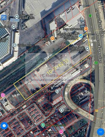 เนื้อที่ 10 ไร่ 3 งาน 62.5 ตารางวา (ขายยกแปลง) หน้ากว้างติดถนน 74 เมตร x ยาว 300 เมตร
