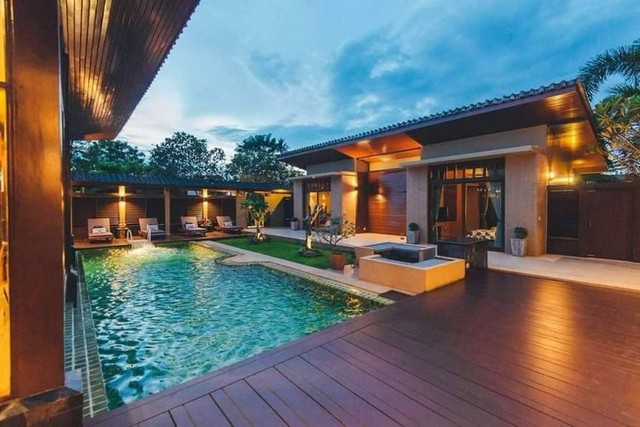 พูลวิลล่าสวย สไตล์รีสอร์ท บ้านไม่สัก เนื้อที่กว้าง ร่มรื่น หนองแฝก สารภี