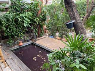 พร้อมเฟอร์นิเจอร์บางส่วนพื้นที่สวนขนาดใหญ่ มีบ่อปลา