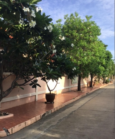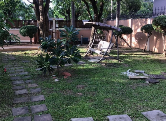 ตรงข้ามเป็นพื้นที่สวนหย่อมที่สวยมาก เป็นบ้านครึ่งแปลง สวนในบ้านอีกครึ่งแปลง รวม 201 ตารางวา ที่จอดรถทั้งในบ้านริมบ้านได้ 10 คัน