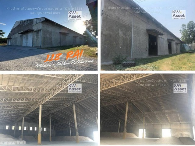 #ขายที่ดิน 118-2-85 ไร่ (189,940 ตร.ม.) พร้อมโกดัง - โรงงาน 6 หลัง พิมาย - นครราชสีมา มีใบอนุญาตกิจการโรงงาน รง.4: 9(6)