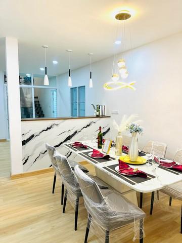 มีห้องโถงและห้องครัวใหญ่ มีชุดโซฟา ขนาดใหญ่ ปูพื้น SPC ทั้งหลัง