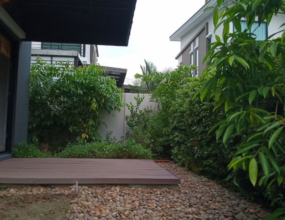 - หน้าบ้านหันทางทิศตะวันตก มีสวนทางด้านทิศใต้ เปิดรับลมตะวันตกเฉียงใต้ พร้อมระเบียงนั่งเล่น