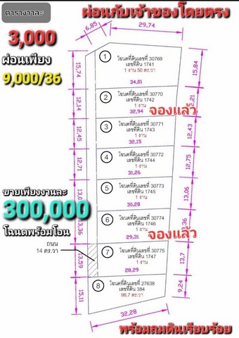 แบ่งขายแปลงละ 1 งาน 2 งาน หรือ 1 ไร่