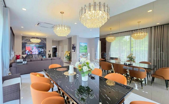 - 4 ห้องนอน, 5 ห้องน้ำ, 2 ห้องรับแขก, 1 ห้องครัว, 1 ห้องรับประทานอาหาร, 1 ห้องแม่บ้าน, 4 ที่จอดรถ