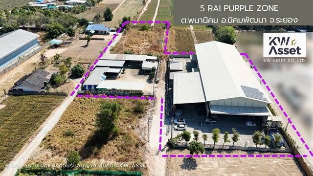 #ขายที่ดิน 5 ไร่ พร้อมโรงงาน 1,700 ตรม ผังม่วงลาย ทำเลทองต.พนานิคม อ.นิคมพัฒนา จ.ระยอง