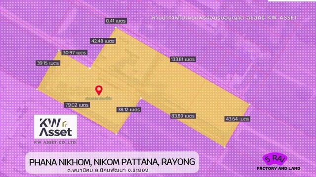 Land for sale with factory 5 rai, purple pattern ???? Prime location????T.Phananikhom, A.Nikhom Phatthana, Rayong Province