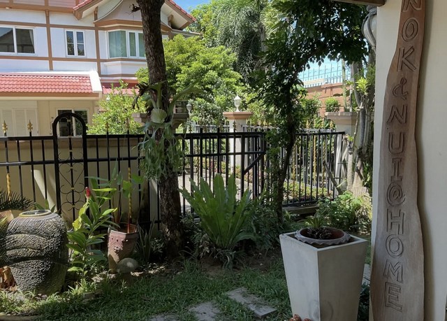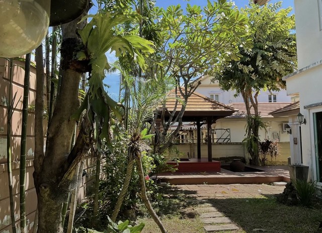 บ่อปลาคาร์ฟ น้ำพุ / พื้นที่สวนร่มรื่นตกแต่งด้วยเฟอร์นิเจอร์ไม้แท้บิวท์อินทั้งหลัง