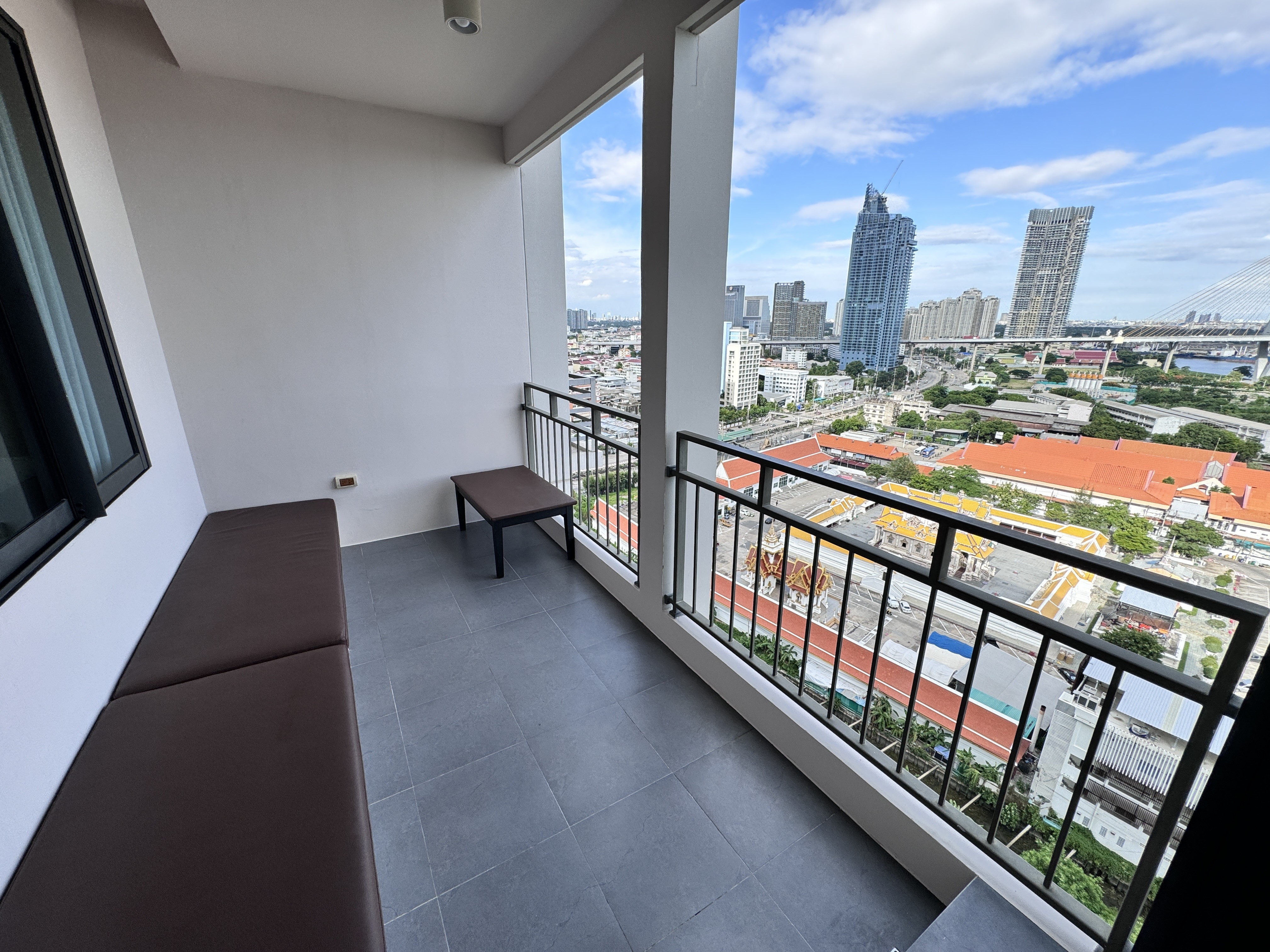 ระเบียงใหญ่มาก พร้อมโซฟานั่งปาร์ตี้ หรือชมวิวแม่น้ำ พักผ่อนได้เต็มที่