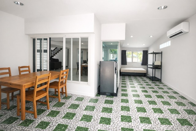 มี 2 ห้องอเนกประสงค์ ห้องนั่งเล่น และห้องครัวแยกเป็นสัดส่วน