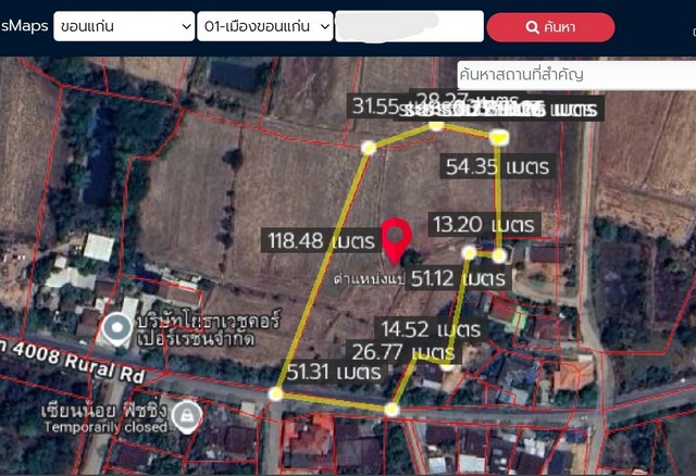 หน้ากว้างติดถนน 51 เมตร ลึก 118 เมตร