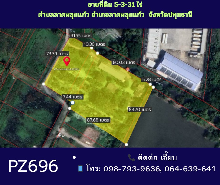 PZ696-ขายที่ดินถมแล้ว 5-3-31 ไร่ ติดถนนสาธารณะ