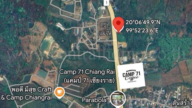 ที่ดินเปล่า 1 ไร่ แม่จัน เชียงราย ติดถนนพหลโยธิน ใกล้ Camp71